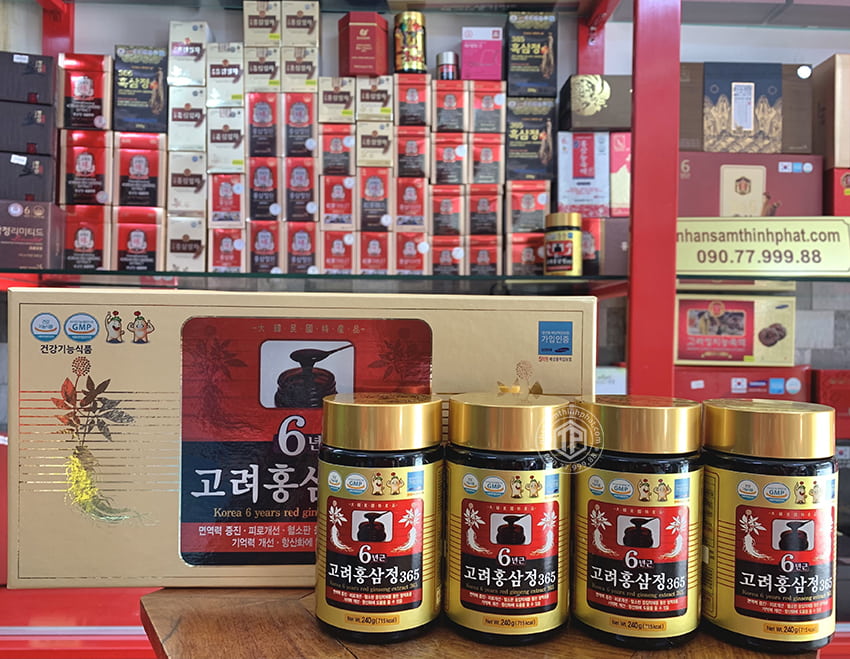 ➢ Cao hồng sâm Hàn Quốc 6 năm tuổi 365 - 240g hộp 4 lọ là sản phẩm được tạo thành sau khi chiết xuất những tinh túy của củ hồng sâm. Những tinh chất của củ nhân sâm sau những quá trình chế biến công phu sẽ được cô đặc lại thành một loại keo có màu cánh gián vô cùng bổ dưỡng và dễ hấp thu cho cơ thể con người, được gọi là Cao Hồng sâm.