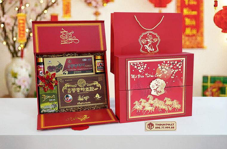 Xuân 2026, Thịnh Phát trình làng các mẫu hộp quà Tết sang trọng, ý nghĩa với thiết kế hiện đại, bắt kịp xu hướng. Tùy theo sở thích hay nhu cầu biếu tặng mà quý khách có thể yêu cầu nhân viên lựa chọn cho riêng mình một set quà tặng theo ý muốn.
