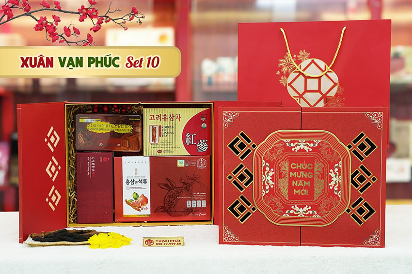 ➢ Với giá bán chưa đến 2 triệu đồng cho một hộp quà có từ 5-6 sản phẩm bên trong từ hồng sâm cao cấp, chính hãng Hàn Quốc, Xuân Vạn Phúc luôn là lựa chọn được nhiều khách hàng yêu thích khi đến với Thịnh Phát trong dịp Tết.