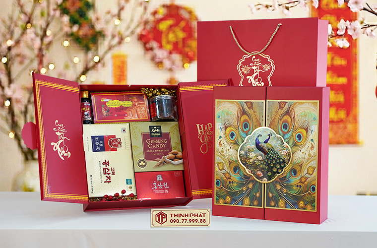 Xuân 2026, Thịnh Phát trình làng các mẫu hộp quà Tết sang trọng, ý nghĩa với thiết kế hiện đại, bắt kịp xu hướng. Tùy theo sở thích hay nhu cầu biếu tặng mà quý khách có thể yêu cầu nhân viên lựa chọn cho riêng mình một set quà tặng theo ý muốn.