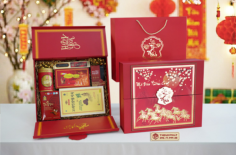 Xuân 2026, Thịnh Phát trình làng các mẫu hộp quà Tết sang trọng, ý nghĩa với thiết kế hiện đại, bắt kịp xu hướng. Tùy theo sở thích hay nhu cầu biếu tặng mà quý khách có thể yêu cầu nhân viên lựa chọn cho riêng mình một set quà tặng theo ý muốn.