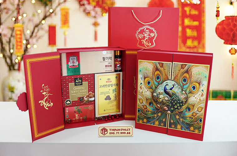 Xuân 2026, Thịnh Phát trình làng các mẫu hộp quà Tết sang trọng, ý nghĩa với thiết kế hiện đại, bắt kịp xu hướng. Tùy theo sở thích hay nhu cầu biếu tặng mà quý khách có thể yêu cầu nhân viên lựa chọn cho riêng mình một set quà tặng theo ý muốn.
