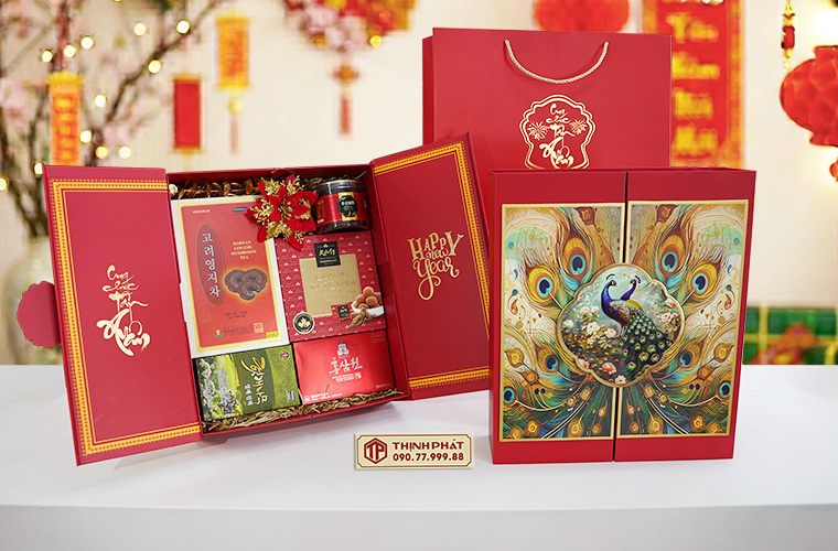 Xuân 2026, Thịnh Phát trình làng các mẫu hộp quà Tết sang trọng, ý nghĩa với thiết kế hiện đại, bắt kịp xu hướng. Tùy theo sở thích hay nhu cầu biếu tặng mà quý khách có thể yêu cầu nhân viên lựa chọn cho riêng mình một set quà tặng theo ý muốn.