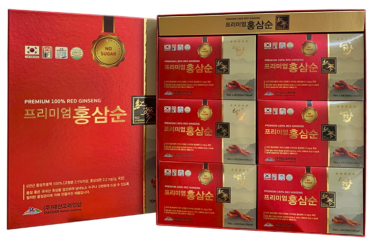 ➢ Nhận thức được các tình trạng trên, thương hiệu Daesan đã cho ra mắt sản phẩm Nước hồng sâm không đường Daesan Hàn Quốc hộp 30 gói x 70ml được chiết xuất hoàn toàn từ 100% tinh chất hồng sâm 6 năm tuổi, không chứa đường hay các chất làm ngọt nhân tạo.