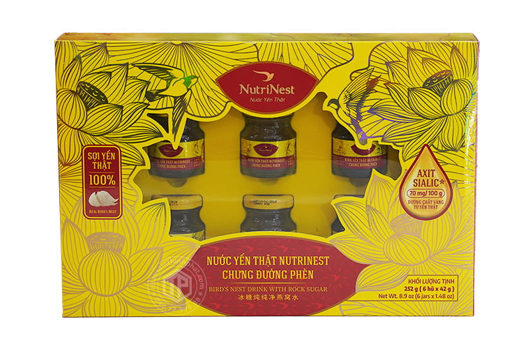 ✔ Nước yến thật Nutrinest chưng đường phèn hộp 6 lọ x 42g là kết quả của công nghệ chế biến hiện đại Dinh dưỡng trọn vẹn nhờ công nghệ SpyderShake sử dụng một mạng sinh học để nén các sợi yến xuống đáy hũ. Nhờ đó các sợi yến thật không bị tan thành nước khi chưng tiệt trùng ở nhiệt độ cao.. Đặc biệt, sản phẩm hoàn toàn không dùng bất cứ loại hương liệu, chất tạo màu, chất bảo quản độc hại nào khác, cam kết 100% về độ tinh khiết, đảm bảo an toàn với sức khỏe người dùng.sẽ mang đến cho bạn sản phẩm giàu nguồn dinh dưỡng, giúp tăng cường sức khỏe.