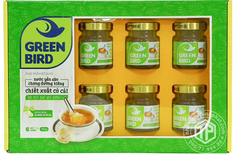 ✡ Thơm ngon hấp dẫn: Nước yến Green Bird được chưng theo cách truyền thống với sợi yến mềm tan trong miệng, vị ngọt thanh của đường phèn và mùi hương Caramen pha hương Vani tự nhiên.